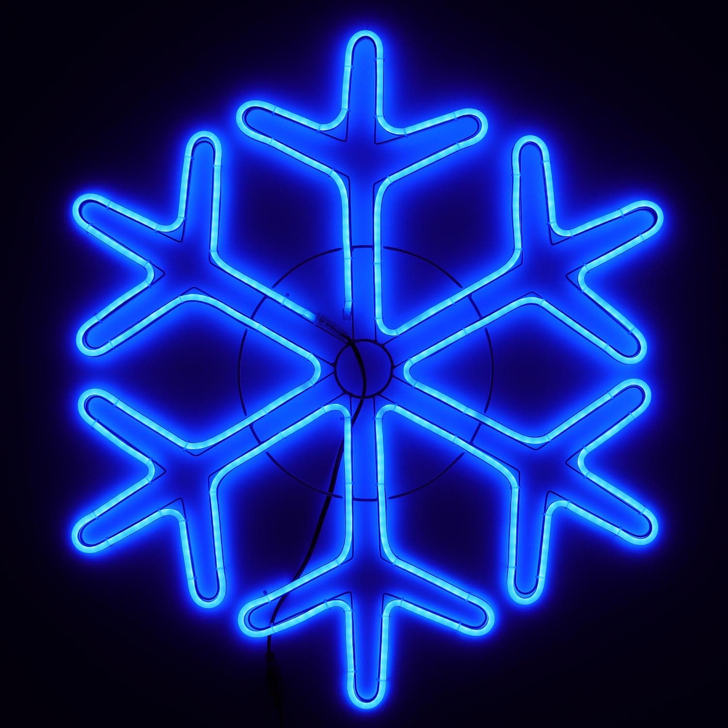 Светодиодная снежинка изготовлена из светодиодного гибкого неона, закрепленного на металлическом каркасе. Фигура полностью готова к использованию и не требует дополнительных затрат на установку и монтаж. Новогодние световые фигуры из гибкого неона подойдут для праздничного декора улицы, фасада и помещения.
