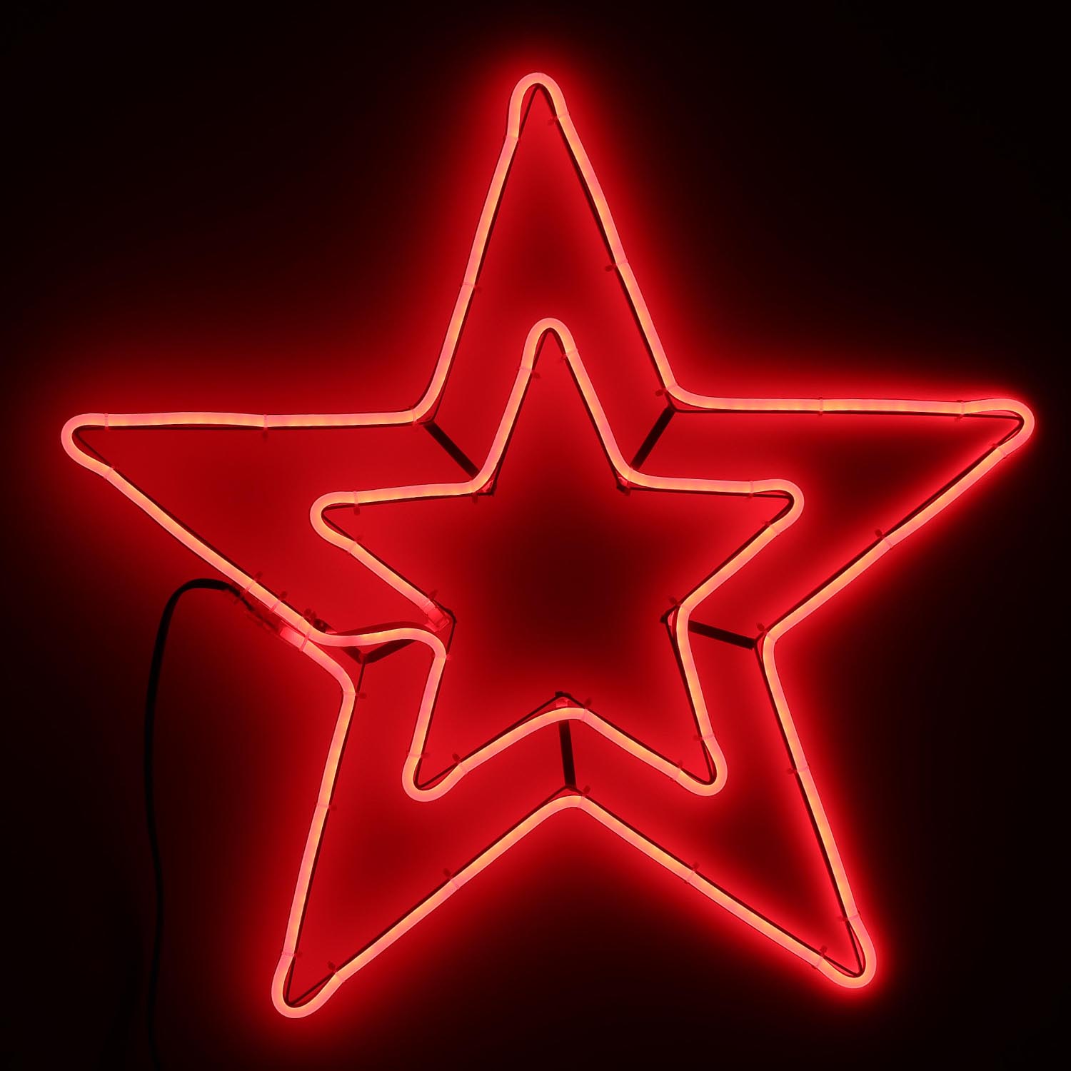 Светодиодная звезда изготовлена из светодиодного гибкого неона, закрепленного на металлическом каркасе. Фигура полностью готова к использованию и не требует дополнительных затрат на установку и монтаж. Новогодние световые фигуры из гибкого неона подойдут для праздничного декора улицы, фасада и помещения.